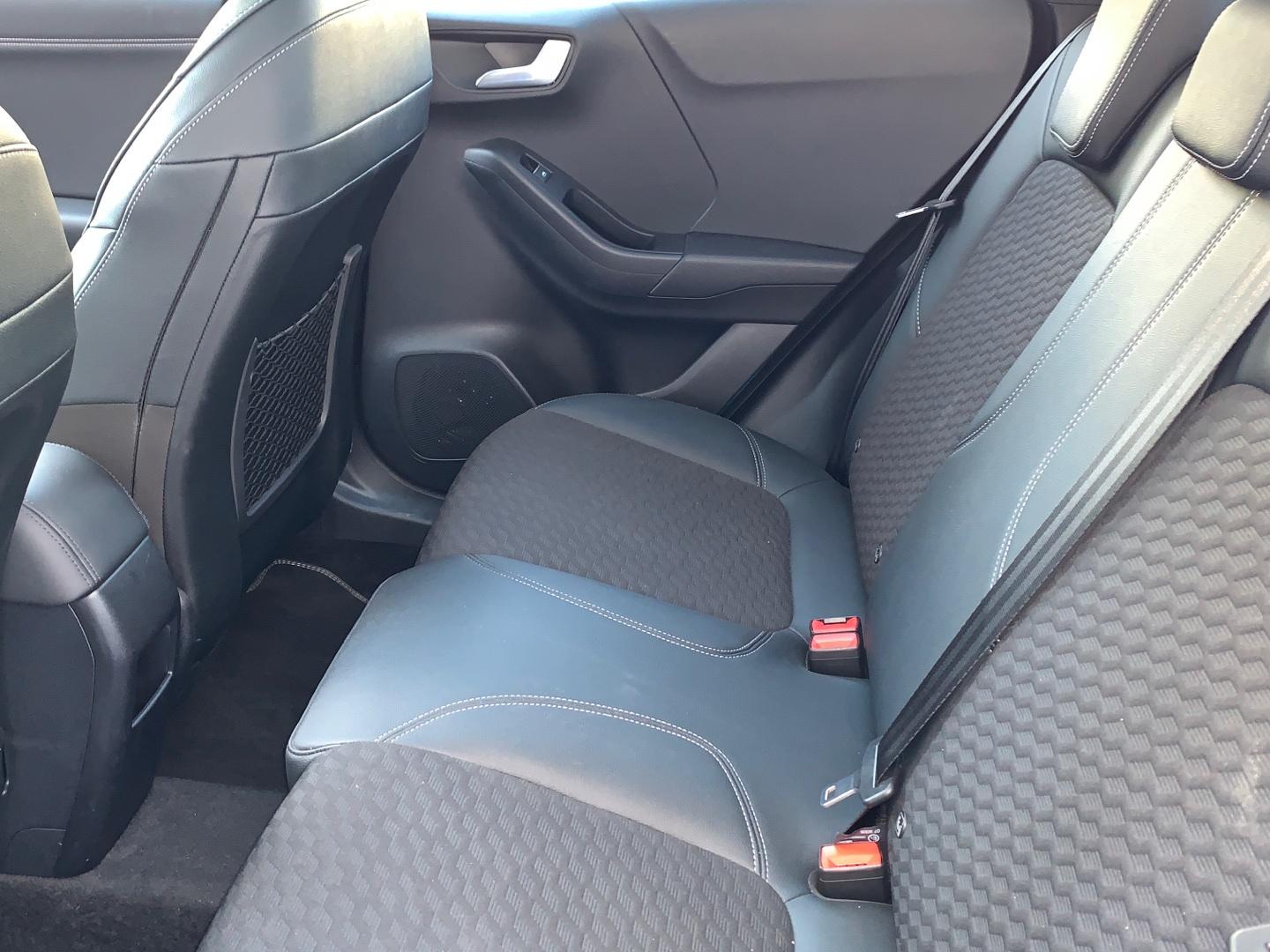 - Asientos de tela (material principal) y de cuero sintético (material secundario)