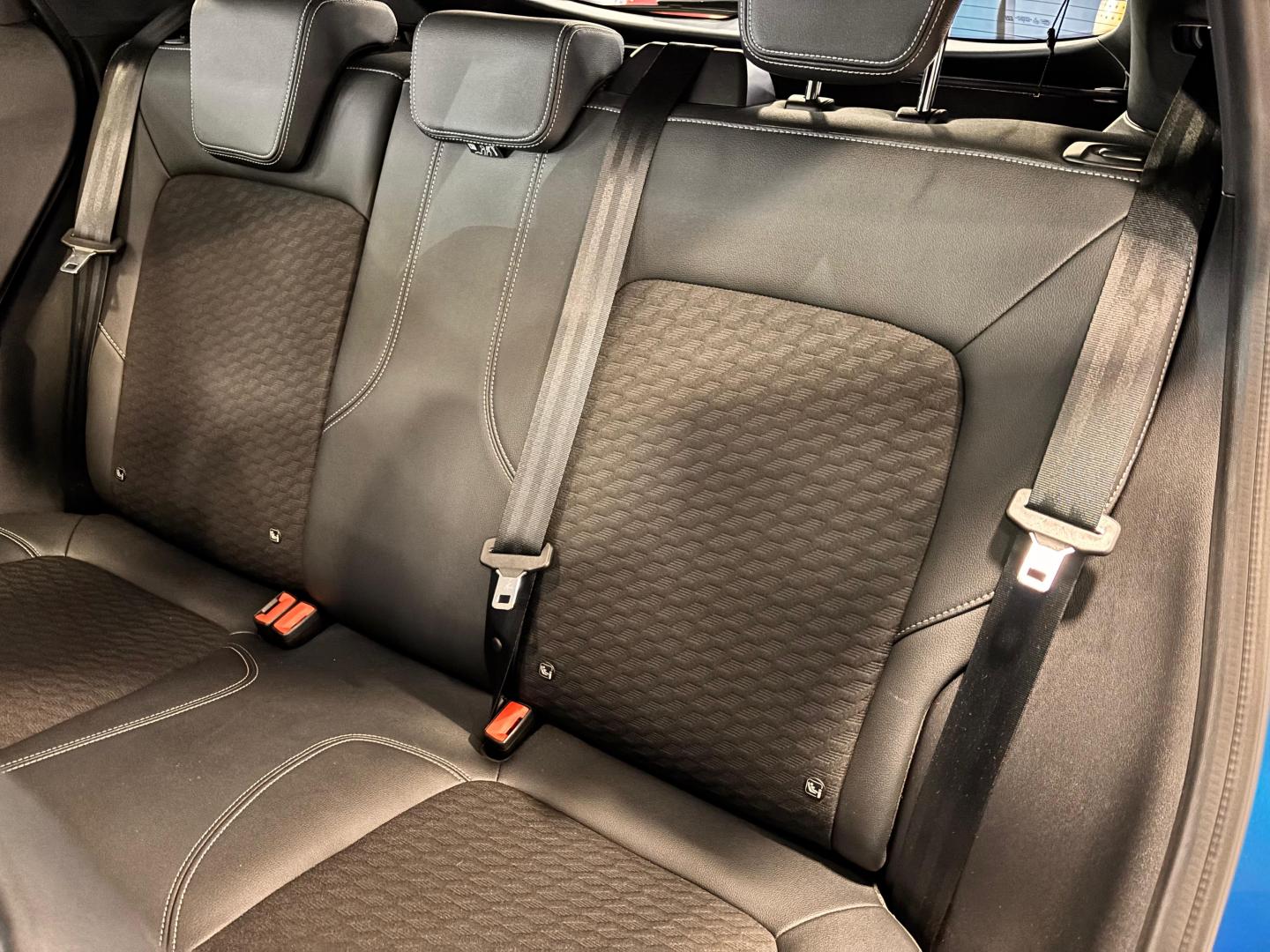 - Asientos de tela (material principal) y de cuero sintético (material secundario)