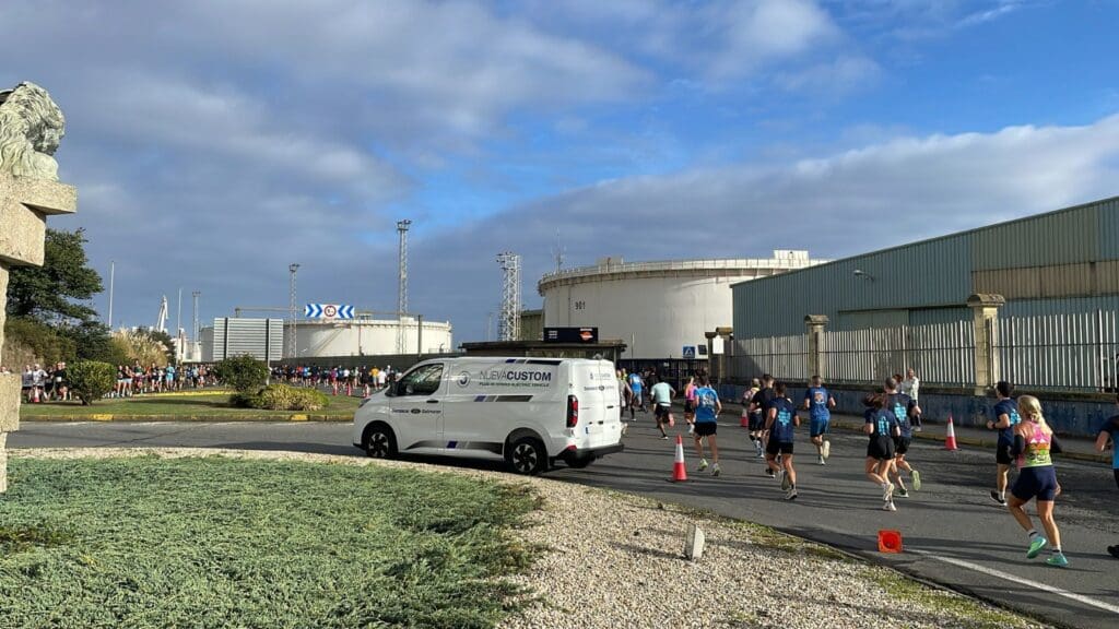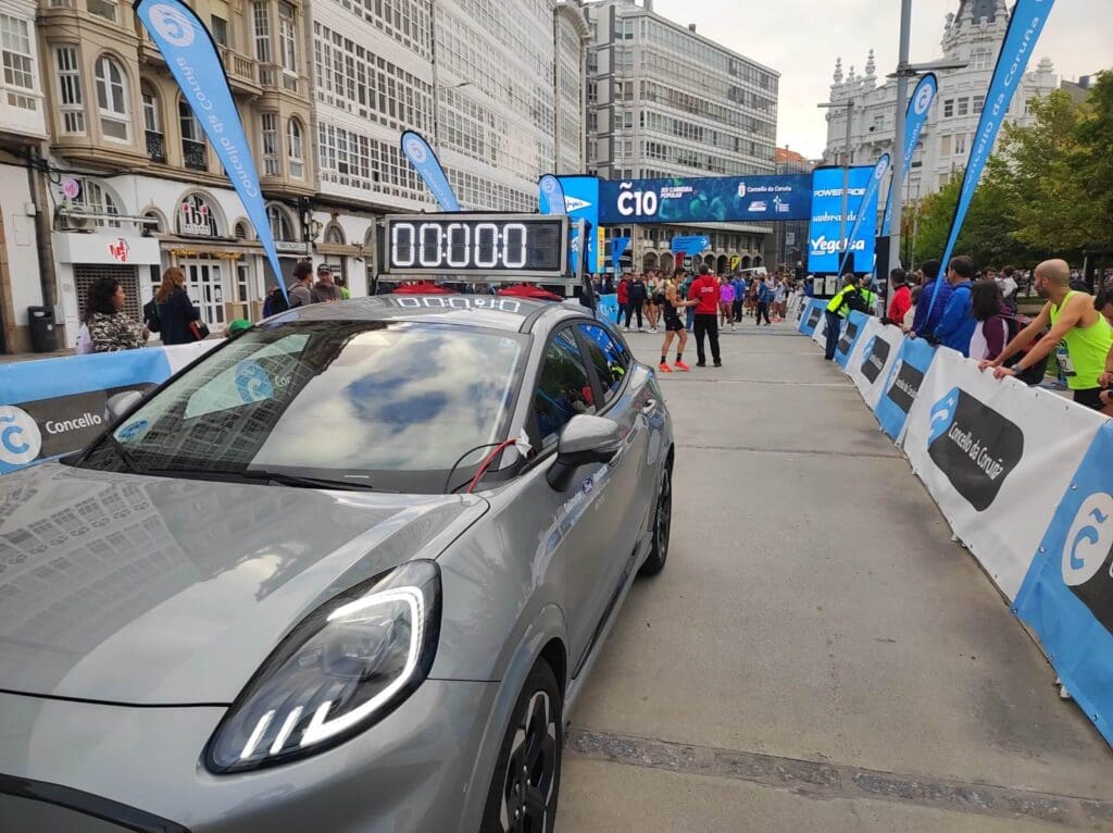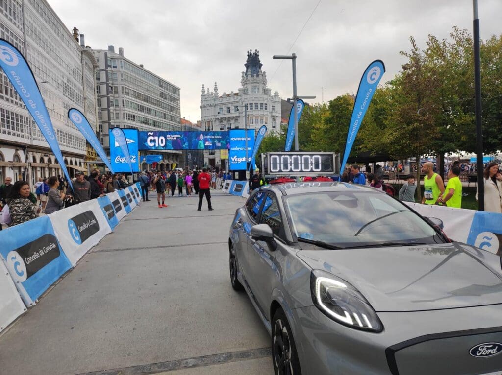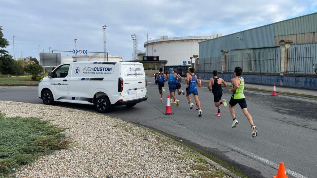 Durante la prueba, el Ford Puma 100% eléctrico encabezó la carrera desde la salida, acompañando a los corredores a lo largo del recorrido urbano. Además, las furgonetas Ford Transit Custom Eléctricas participaron en las labores de avituallamiento y apoyo a la organización, reflejando la versatilidad y eficiencia de la gama eléctrica de Ford que representamos en Galmotor.